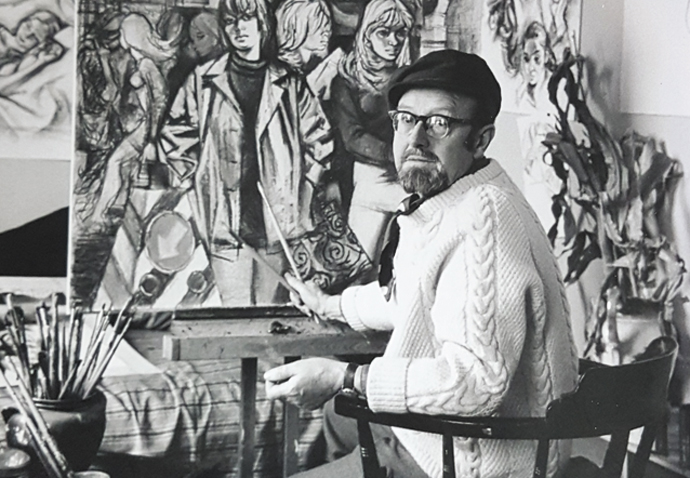 Harry Baines and his wife Pauline both had distinguished and individual creative careers. Harry was born in Manchester and worked his way up though the art establishment. He was also a political activist, known at the time as a communist. He worked to bring one Picassos anti war works to Manchester, which with Picassos direct blessing was nailed to the walls of a Ford car showroom in artistic demonstration! It is now safely restored and on permanent exhibition in Italy…